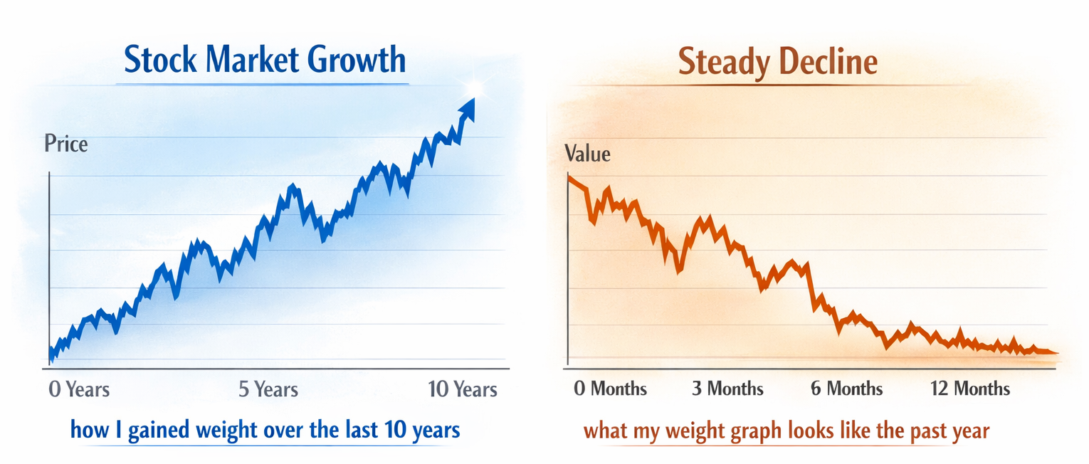 Have you tried to lose weight or be in shape? I have, but I failed so many times. My weight graph over the last 10 years looks like a stock chart. Constant ups and downs, but with an upward trend. This is because I tried to do certain fads like the keto diet or a no-carb diet in a short period of time without really changing my mindset and long-term habits. I only started to see true results recently when I changed my long-term habits with food. I find interview preparation similar. You may see some results with grinding for 3 months to land a job, but they are not a long-term solution. Though you may be able to pass interviews here and there, you still may not feel confident. Only after mastering concepts and knowledge in depth do you start to feel confident. There are many paths to losing weight and being healthy, but all paths have underlying and fundamental truths: eating healthy, exercising, and learning to enjoy the process consistently. For interviewing, it is not much different: studying, building, and learning to enjoy the process consistently.
